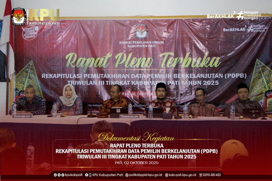 KPU Kabupaten Pati melaksanakan Rapat Pleno Terbuka Rekapitulasi Pemutakhiran Data Pemilih Berkelanjutan (PDPB) Triwulan III Tahun 2025, Kamis (2/10/25)