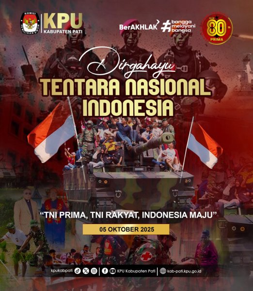 KPU Kabupaten Pati mengcapkan Selamat Hari Ulang Tahun ke-80 Tentara Nasional indonesia, "TNI Prima, TNI Rakyat, Indonesia Maju".