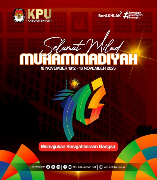 Selamat Milad ke-113 Muhammadiyah. Semoga: 1). Muhammadiyah melalui gerakannya semakin memperkuat dan memperluas usaha dalam memajukan kesejahteraan masyarakat yang berorientasi pada kesejahteraan sosial-ekonomi yang memiliki tumpuan pada kesejahteraan rohaniah (sejahtera spiritual dan moral), sehingga melahirkan kesejahteraan yang utuh lahir dan batin, 2). Muhammadiyah terus mendorong dan mendukung kebijakan-kebijakan pemerintah untuk mewujudkan kesejahteraan umum sebagaimana perintah UUD 1945 yang semakin nyata dan merata, lebih khusus bagi kesejahteraan rakyat dalam pondasi Keadilan Sosial bagi Seluruh Rakyat Indonesia sejalan sila kelima Pancasila
