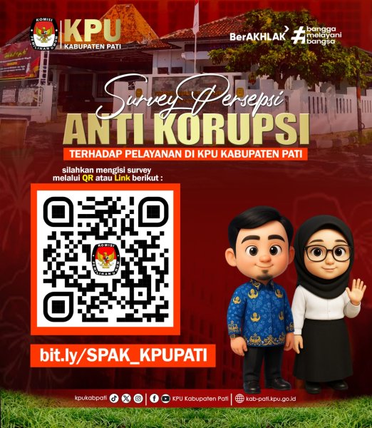 Dalam Rangka Mewujudkan KPU Kabupaten Pati Tahun 2025 sebagai Instansi yang Bersih, Transparan, dan Bebas dari Praktik Korupsi, Kolusi dan Nepotisme, Kami mengharapkan bantuan dan Kesediaan Bapak/ibu sekalian memberikan penilaian melalui link berikut :