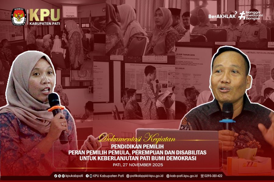 Pati - Guna menyebarluaskan informasi Pemilu dan Pemilihan, dan meningkatkan pengetahuan, pemahaman, dan kesadaran masyarakat tentang hak dan kewajiban dalam Pemilu dan Pemilihaan, serta untuk menyerap masukan dan saran publik, KPU Kabupaten Pati akan melaksanakan Pendidikan Pemilih dengan tema “Peran Pemilih Pemula, Perempuan dan Disabilitas untuk Keberlanjutan Pati Bumi Demokrasi”.