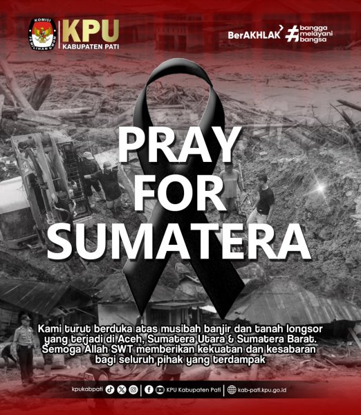 Komisi Pemilihan Umum (KPU) Kabupaten Pati turut berduka atas musibah banjir dan tanah longsor yang terjadi di Aceh, Sumatera Utara (Sumut) & Sumatera Barat (Sumbar).