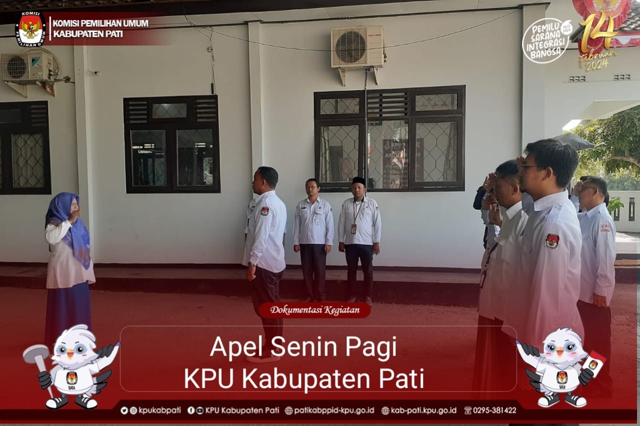 Dalam Apel tersebut bertindak sebagai Komandan Apel Pejabat Fungsional KPU Kabupaten Pati Mohamad Jumari Idris