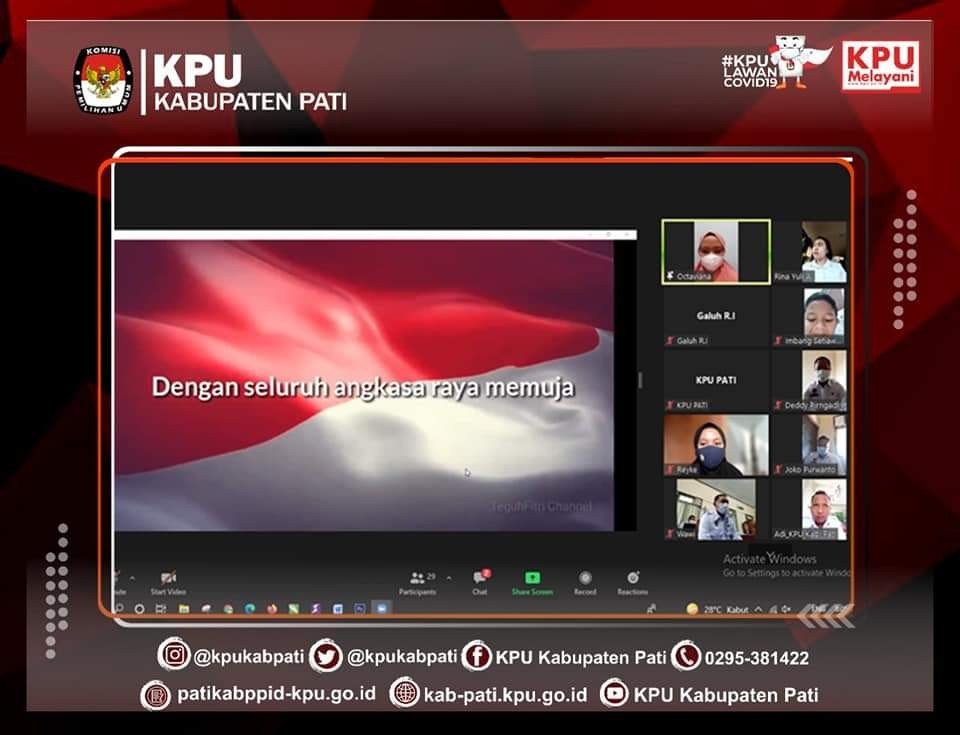 Senin (1/11), KPU Kabupaten Pati melaksanakan apel pagi yang dilakukan secara daring melalui zoom meeting. Zoom dipimpin oleh Kasubbag Hukum KPU Kabupaten Pati Qurniawan Adi Utomo, SH serta diikuti oleh Komisioner, Sekretaris dan seluruh pegawai di lingkungan Sekretariat KPU Kabupaten Pati.