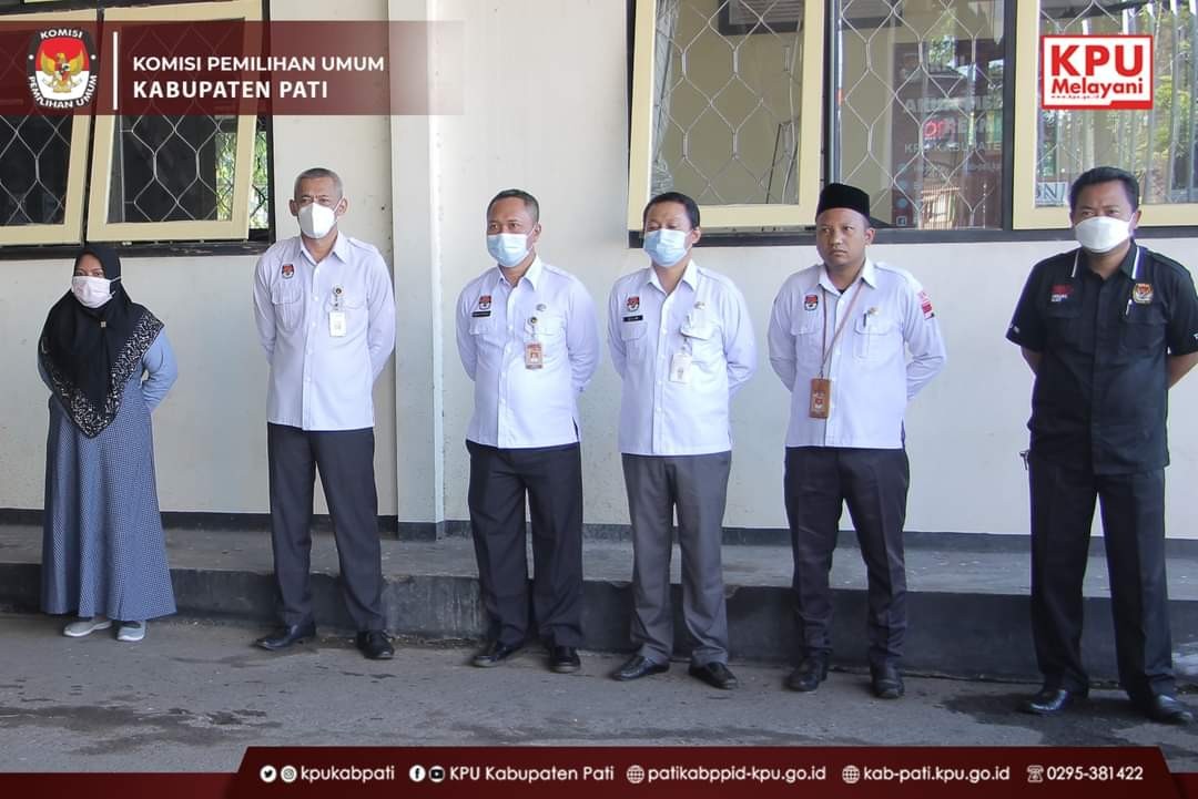 Apel diikuti oleh Komisioner KPU, Pejabat Struktural dan seluruh pegawai di lingkungan KPU Kabupaten Pati. Apel dilaksanakan dengan tetep mematuhi protokol kesehatan.