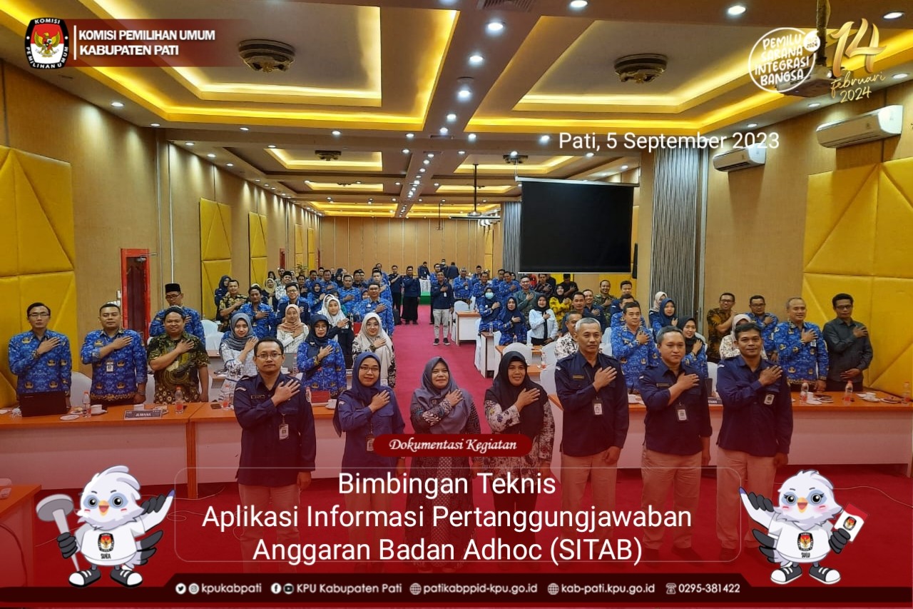 KPU Kabupaten Pati melaksanakan sosialisasi Bimbingan Teknis Aplikasi Informasi PertanggungjawabanAnggaran Badan Adhoc (SITAB). Sosialisasi yang dilaksanakan di Hotel Mewah Merdeka pada tanggal 17 Oktober 2023 tersebut mengundang badan adhoc PPK dan Sekretariat PPK Kabupaten Pati. Acara sendiri dibuka oleh Komisioner KPU Kabupaten Pati Ibu Khoirun Nikmat mewakili PLT Ketua KPU Kabupaten Pati. Kasubbag Keuangan, Umum dan Logistik KPU Kabupaten Pati Bapak Ulim Maftuh, Amd. Bertindak sebagai narasumber dalam bimbingan teknis acara tersebut.