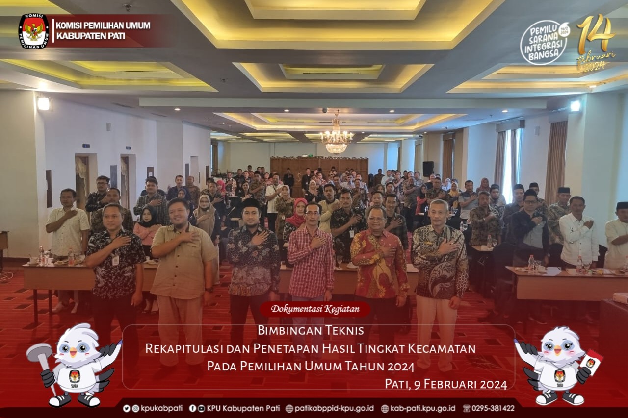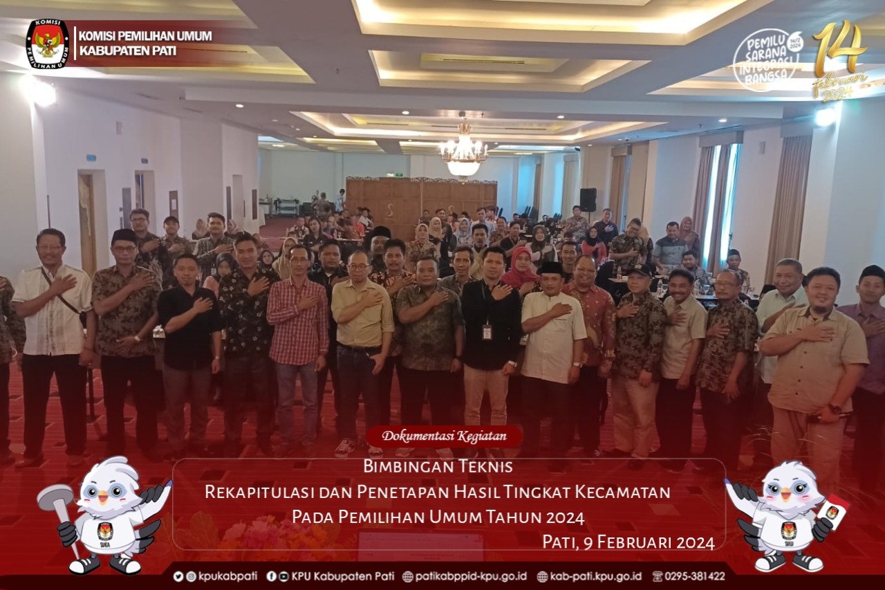 Dalam rangka pelaksanaan Pemilihan Umum tanggal 14 Februari 2024 yang sudah semakin dekat, KPU kabupaten Pati mengadakan Bimbingan Teknis Rekapitulasi dan Penetapan Hasil Tingkat Kecamatan pada Pemilihan Umum Tahun 2024.