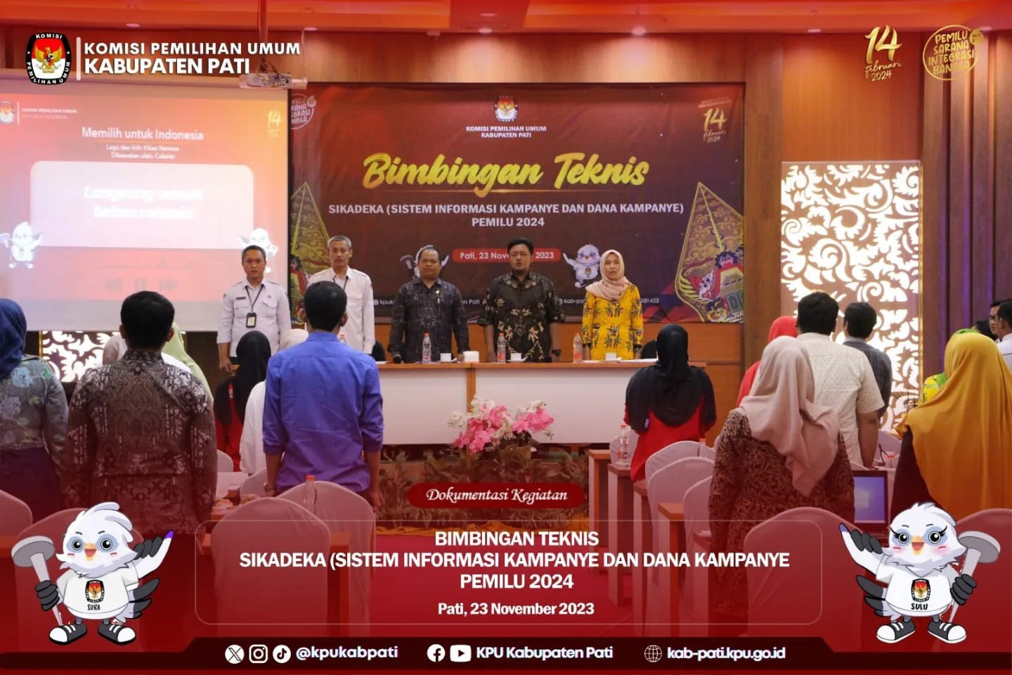 KPU Kabupaten Pati melaksanakan Bimbingan Teknis Sistem Informasi Kampanye dan Dana Kampanye untuk Partai Politik Peserta Pemilu 2024. Kegiatan dilaksanakan di Hotel New Merdeka Kamis 24 November 2023.