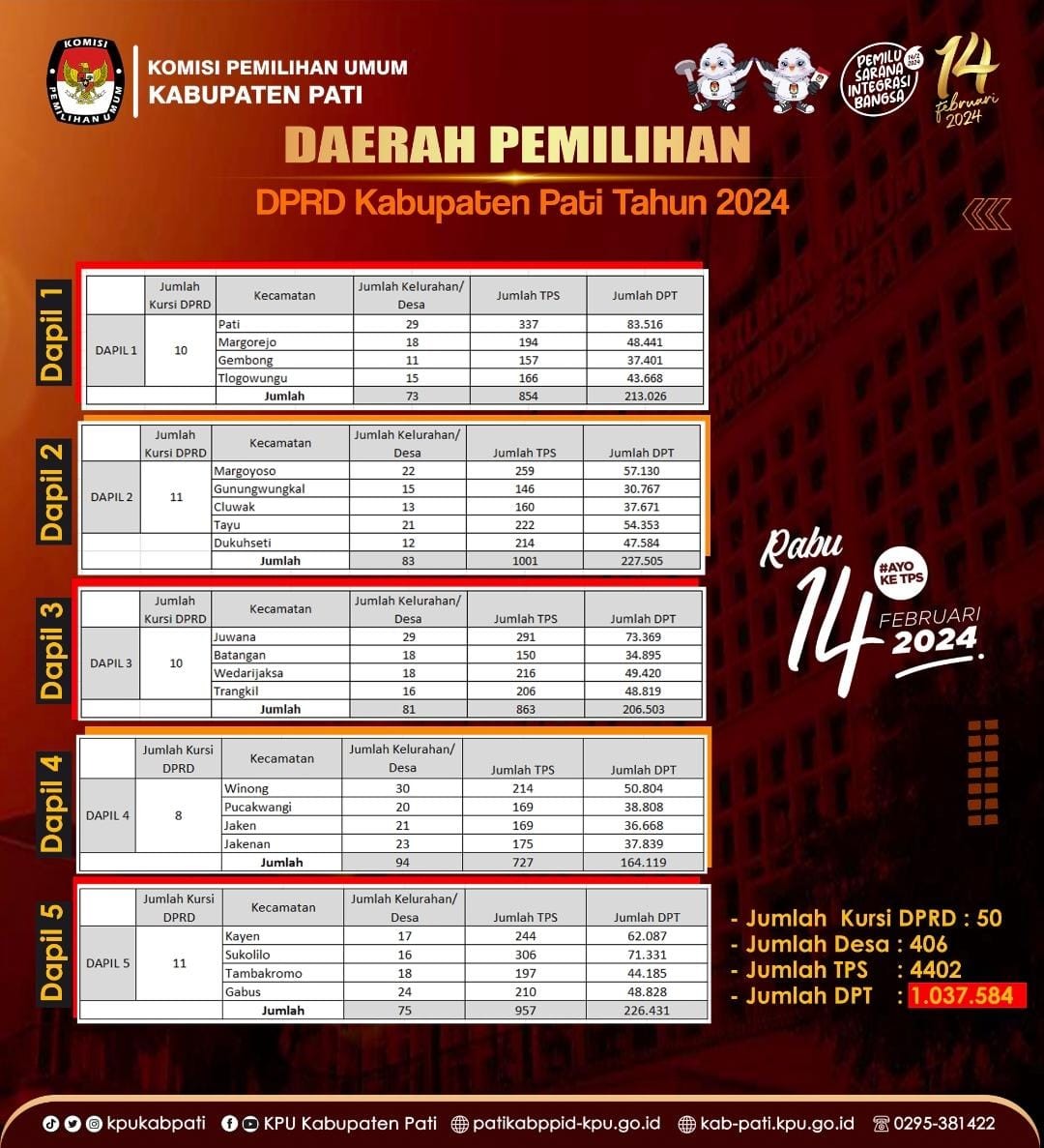 Berikut Pembagian Daerah Pemilihan DPRD Kabupaten Pati Pada pemilihan Umum Tahun 2024.