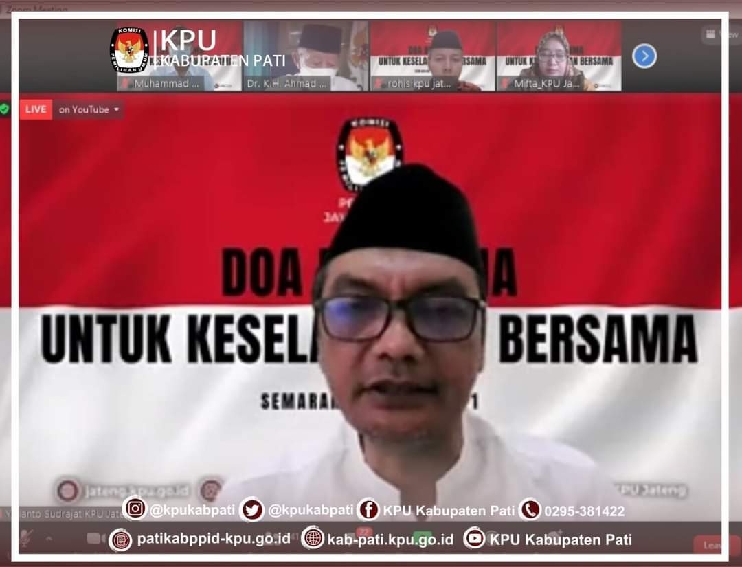 KPU Kabupaten Pati mengikuti kegiatan "DOA BERSAMA UNTUK KESELAMATAN BERSAMA" di masa Pandemi Covid-19, yang diselenggarakan oleh KPU Provinsi Jawa Tengah melalui Zoom Meeting pada pukul 09:00 WIB.