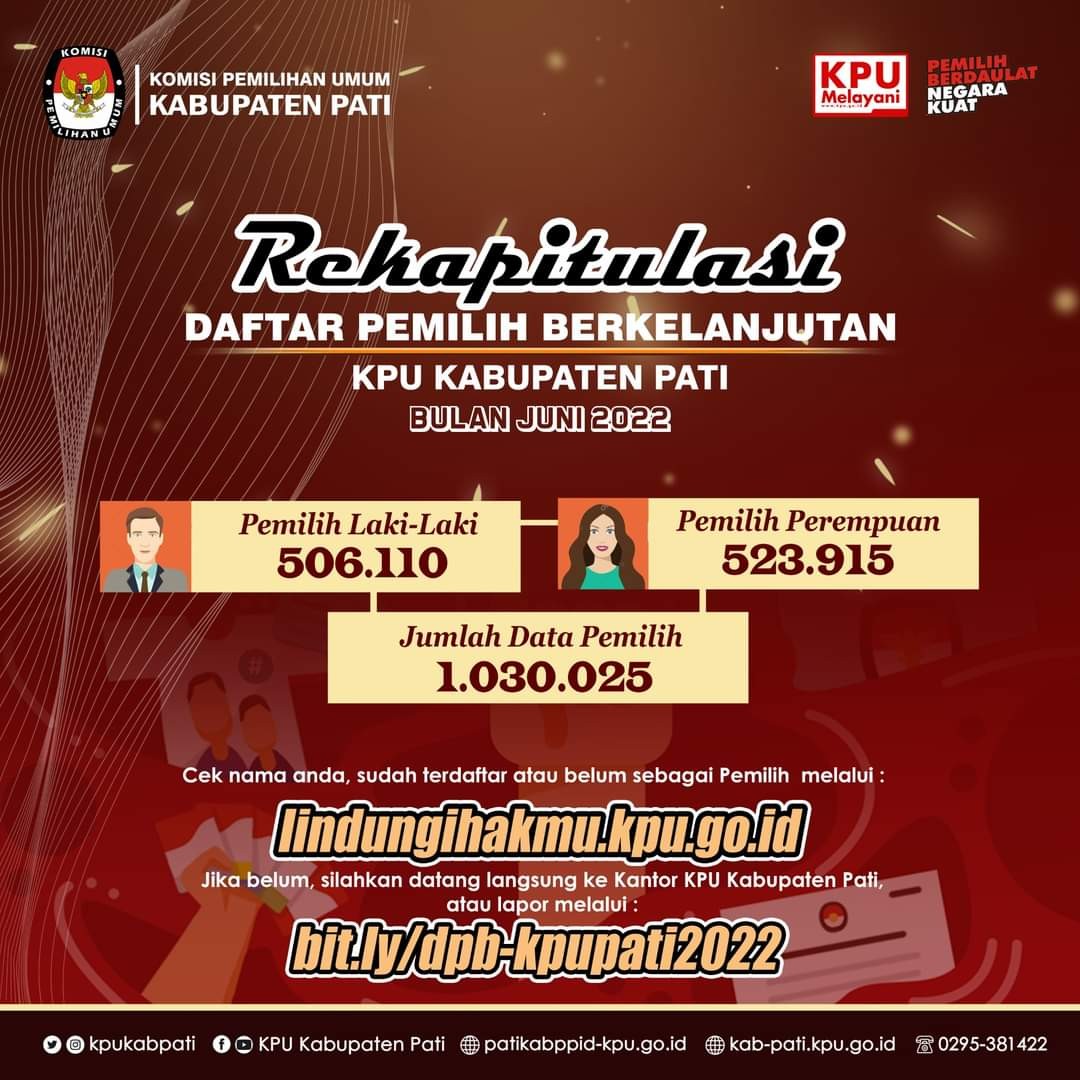 #TemanPemilih, Berikut Rekapitulasi Daftar Pemilih Berkelanjutan Kabupaten Pati Bulan Juni 2022