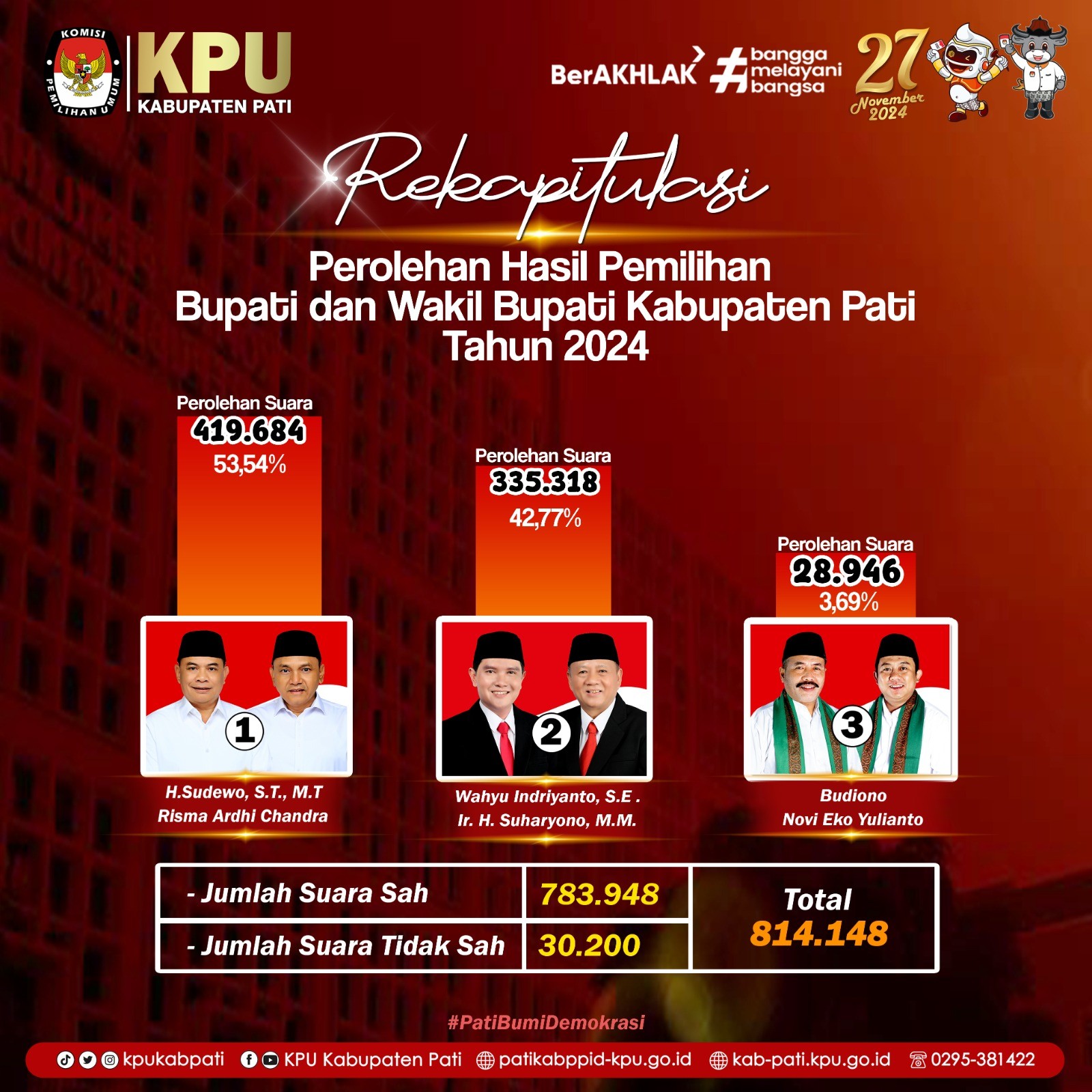 Hasil Rekapitulasi Penghitungan Suara Tingkat Kabupaten Pati Dalam Pilkada Serentak Tahun 2024