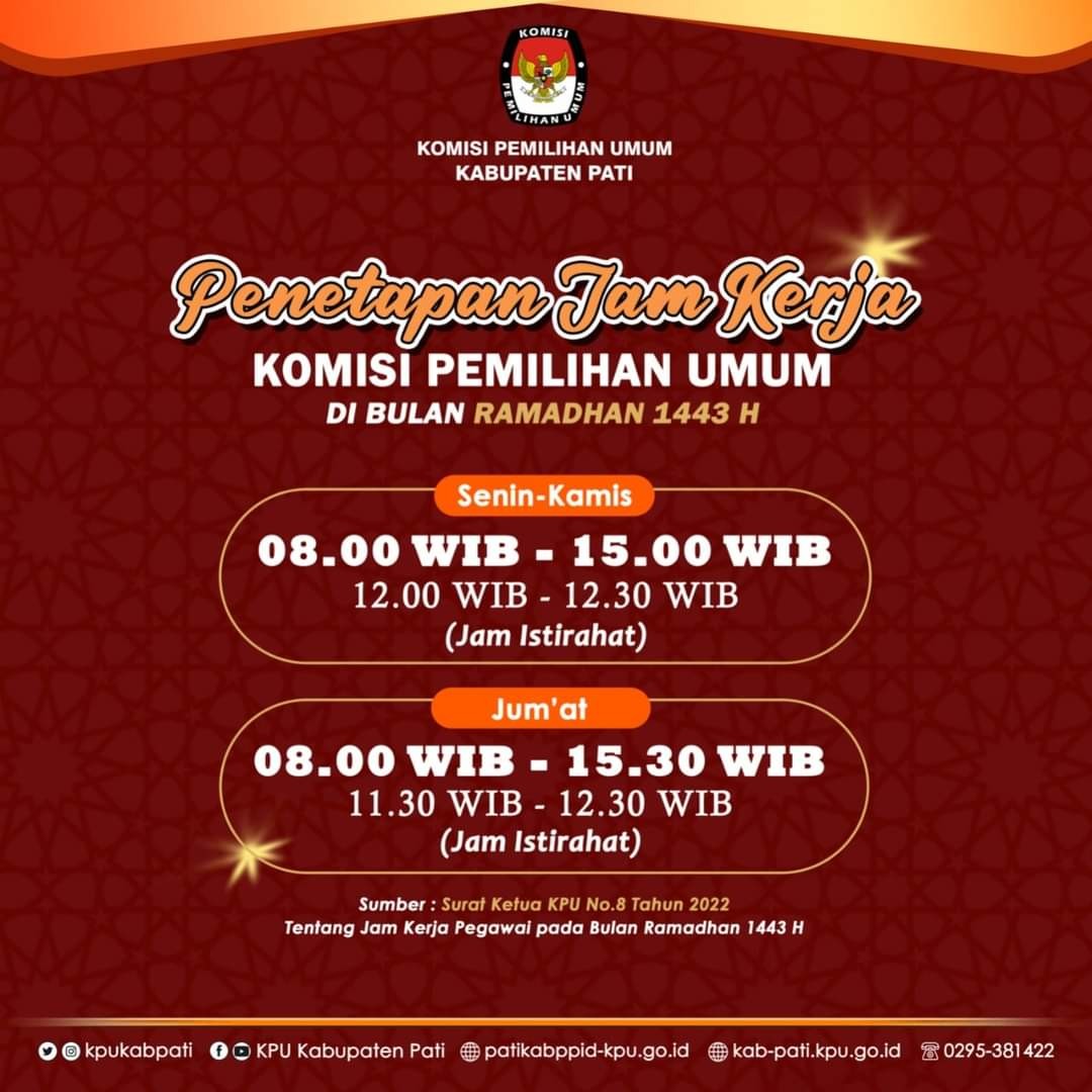 Hola #TemanPemilih, kamu perlu tahu inilah jam pelayanan kepemiluan selama bulan Ramadhan 1442 H di lingkungan KPU Kabupaten Pati.