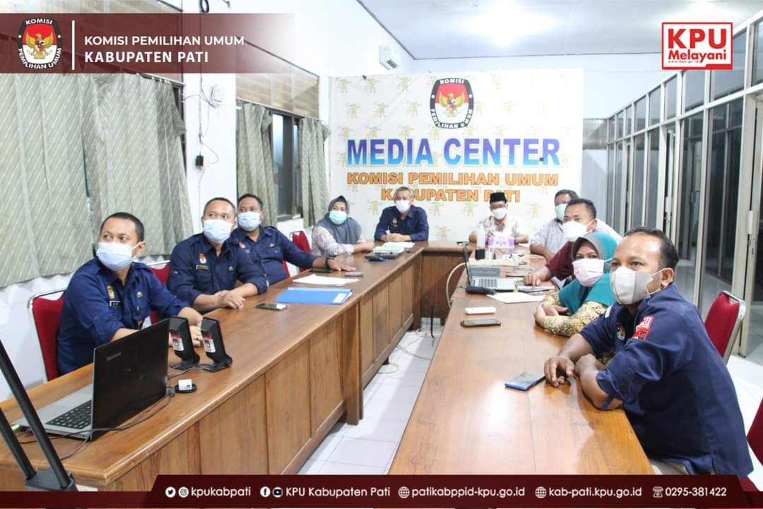 KPU Kabupaten Pati Mengikuti kegiatan Serah Terima Jabatan Anggota KPU Periode 2017-2022 dan Anggota KPU Periode 2022-2027 secara daring, Selasa 12 April 2022 di Ruang KPU Kabupaten Pati.
