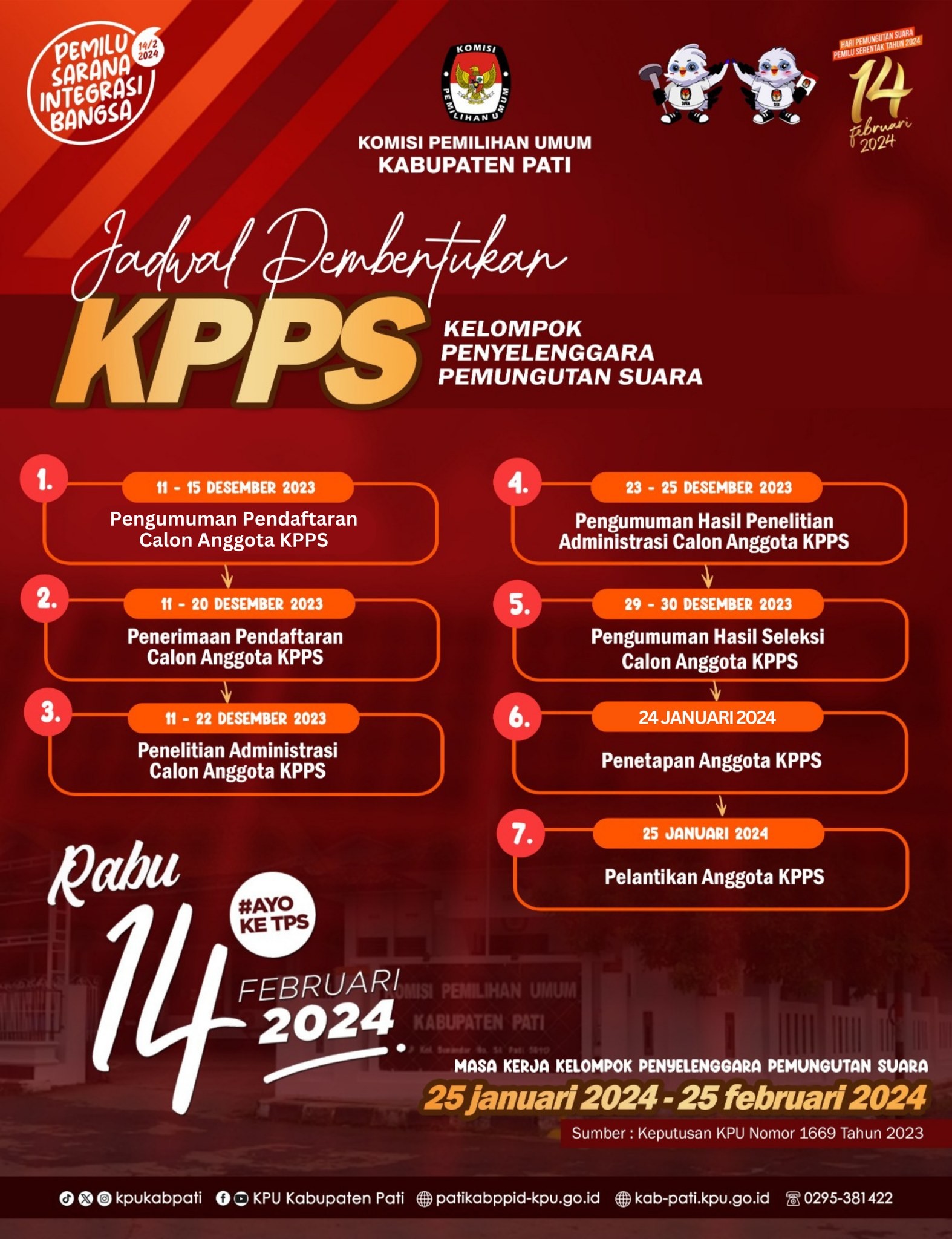 Berikut Informasi Pelaksanaan recrutment Kelompok Penyelenggara Pemungutan Suara (KPPS) Pemilu 2024.