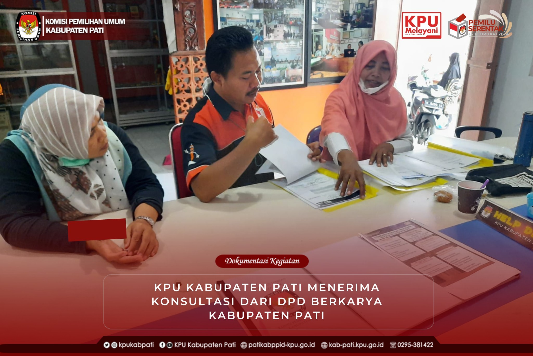 KPU Kabupaten Pati menerima kunjungan dari Partai Berkarya Kabupaten Pati. Kunjungan berkenaan dengan konsultasi tentang regulasi Pendaftaran, Verifikasi dan Penentapan Parpol Peserta Pemilu 2024.