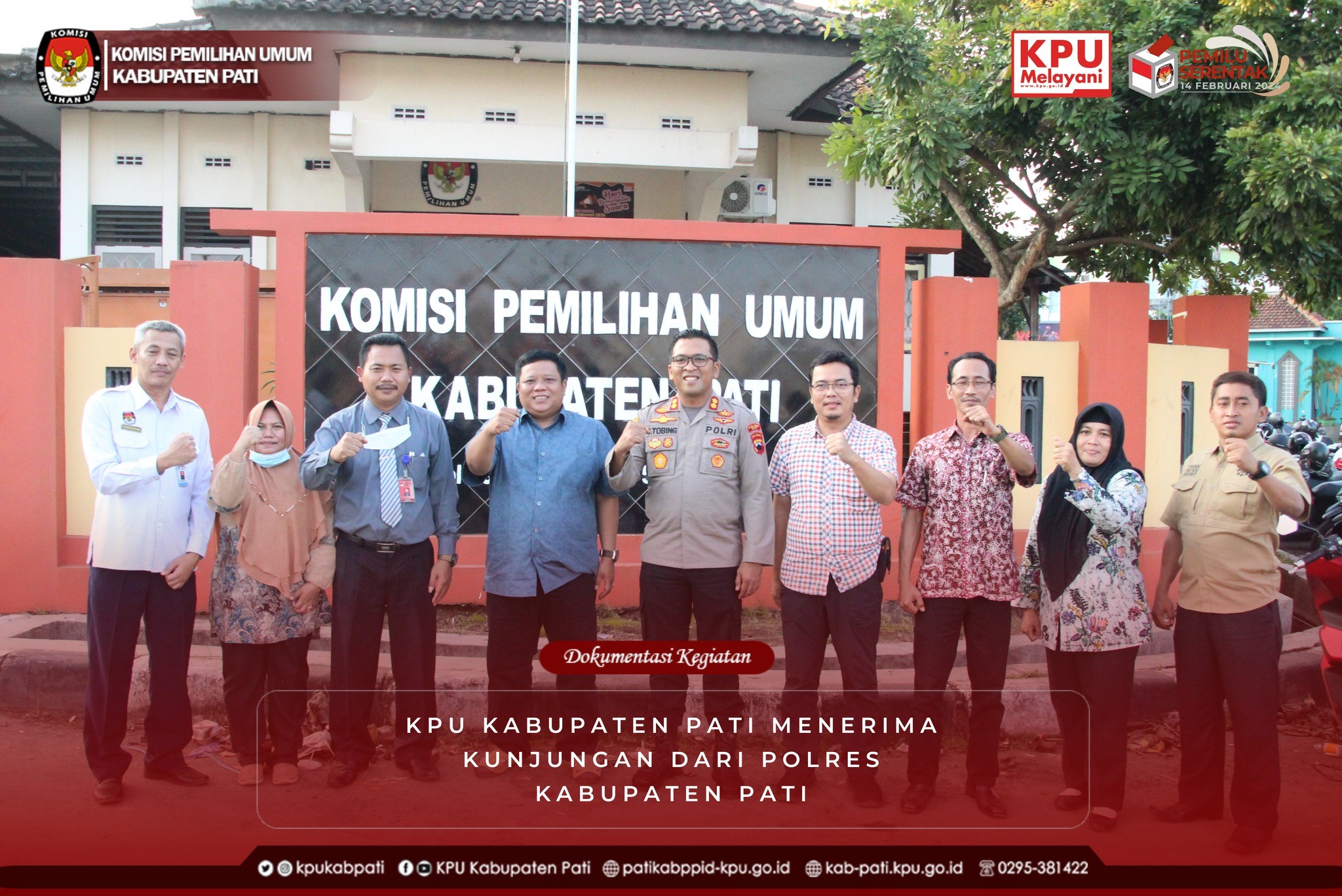 KPU Kabupaten Pati menerima kunjungan dan Kapolres Pati AKBP Christian Tobing beserta jajaran. Kunjungan berlangsung di Ruang Media Center KPU Kabupaten Pati. Kegiatan tersebut dimaksudkan dalam rangka koordinasi jelang Tahapan Pemilu 2024. Ketua dan Anggota berserta Sekretaris KPU Kabupaten Pati menyambut hadir langsung kunjungan tersebut yang berlangsung Pukul 14.00 WIB (28/7).