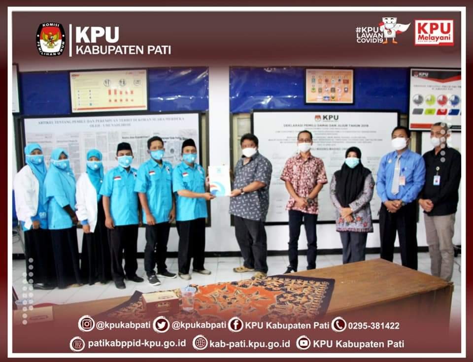 Rabu (15/9), KPU Kabupaten Pati menerima kedatangan pengurus Dewan Pimpinan Daerah (DPD) Partai Gelombang Rakyat Indonesia (Partai Gelora) Kabupaten Pati dalam rangka audiensi kesiapan untuk mengikuti tahapan Pemilu tahun 2024. Audiensi dihadiri oleh Ketua KPU Kab. Pati Imbang Setiawan, ST., Anggota KPU Kab. Pati Divisi Teknis Penyelenggaraan Supriyanto, SH., MH., Anggota KPU Kab. Pati Divisi Sosialisasi, Pendidikan Pemilih, Partisipasi Masyarakat dan SDM Haryono, SHI., MSI., Anggota KPU Kab. Pati Divisi Perencanaan, Data dan Informasi Khoirun Nikmah, S.Sos., Anggota KPU Kab. Pati Divisi Hukum dan Pengawasan Sunarsih, S.Ag., MH. Hadir pula Sekretaris KPU Kab. Pati Sugeng Santosa, S.Sos., Kasubbag Program dan Data KPU Kab. Pati Deddy Pirngadi, ST., dan Kasubbag Hukum KPU Kab. Pati Qurniawan Adi Utomo, SH.