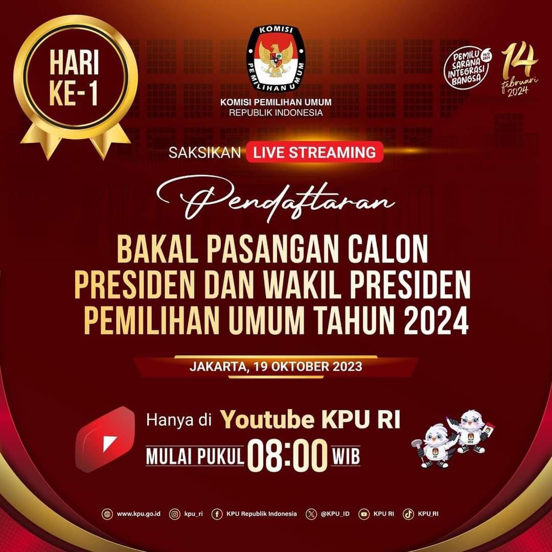 saksikan Live Streaming Pendaftaran Bakal Pasangan Calon Presiden dan Wakil Presiden Pemilihan Umum Tahun 2024 hari ke -1
