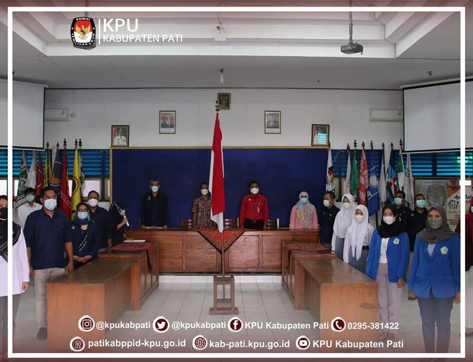 Dalam rangka memelihara dan meningkatkan rasa kebangsaan dan cinta tanah air, KPU Kabupaten Pati mendengarkan Lagu Kebangsaan Indonesia Raya pada Selasa, 31 Agustus 2021, pukul 10:00 WIB secara luring. Kegiatan dipimpin oleh Sekretaris KPU Kabupaten Pati Sugeng Santosa, S.Sos, diikuti oleh Komisioner, Pejabat Struktural dan seluruh pegawai, bertempat di Aula KPU Kabupaten Pati dengan tetap mematuhi protokol kesehatan.