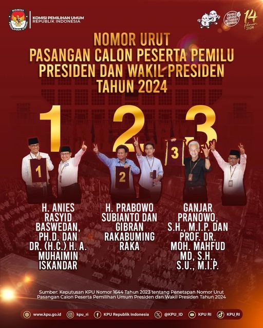 kamu perlu tahu inilah Nomor Urut Pasangan Calon Peserta Pemilu Presiden dan Wakil Presiden Tahun 2024.