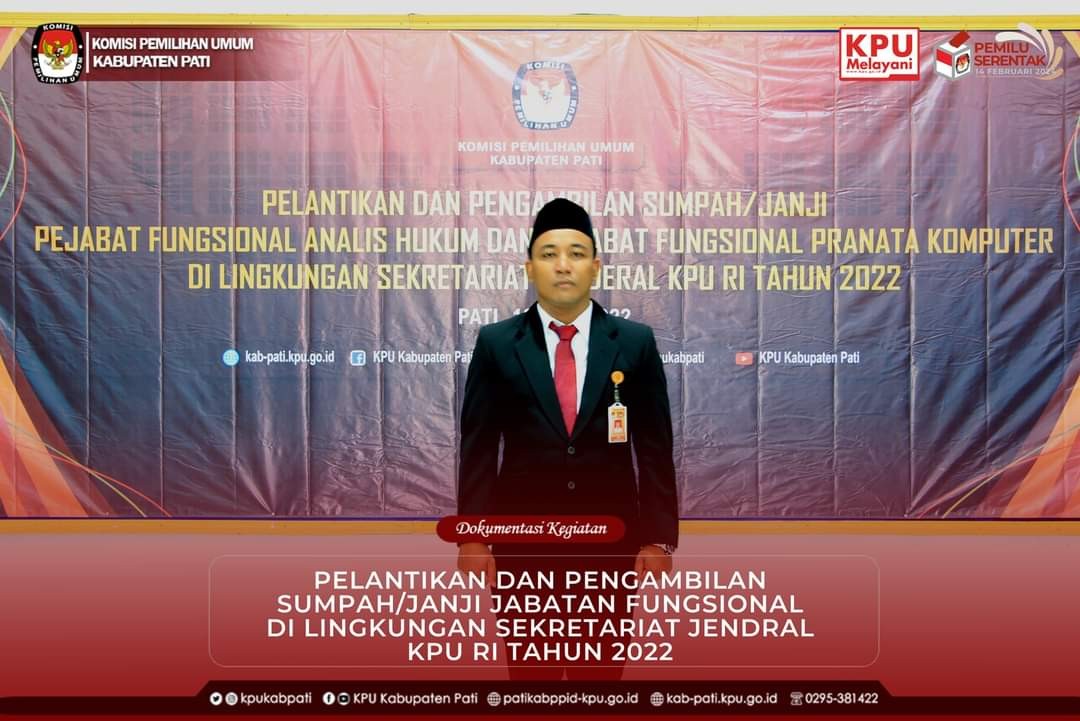 Pejabat yang dilantik sebagai Pejabat Fungsional adalah Mohamad Jumari Idris, A.Md menjadi Pranata Komputer Mahir di Sekretariat KPU Kab. Pati.