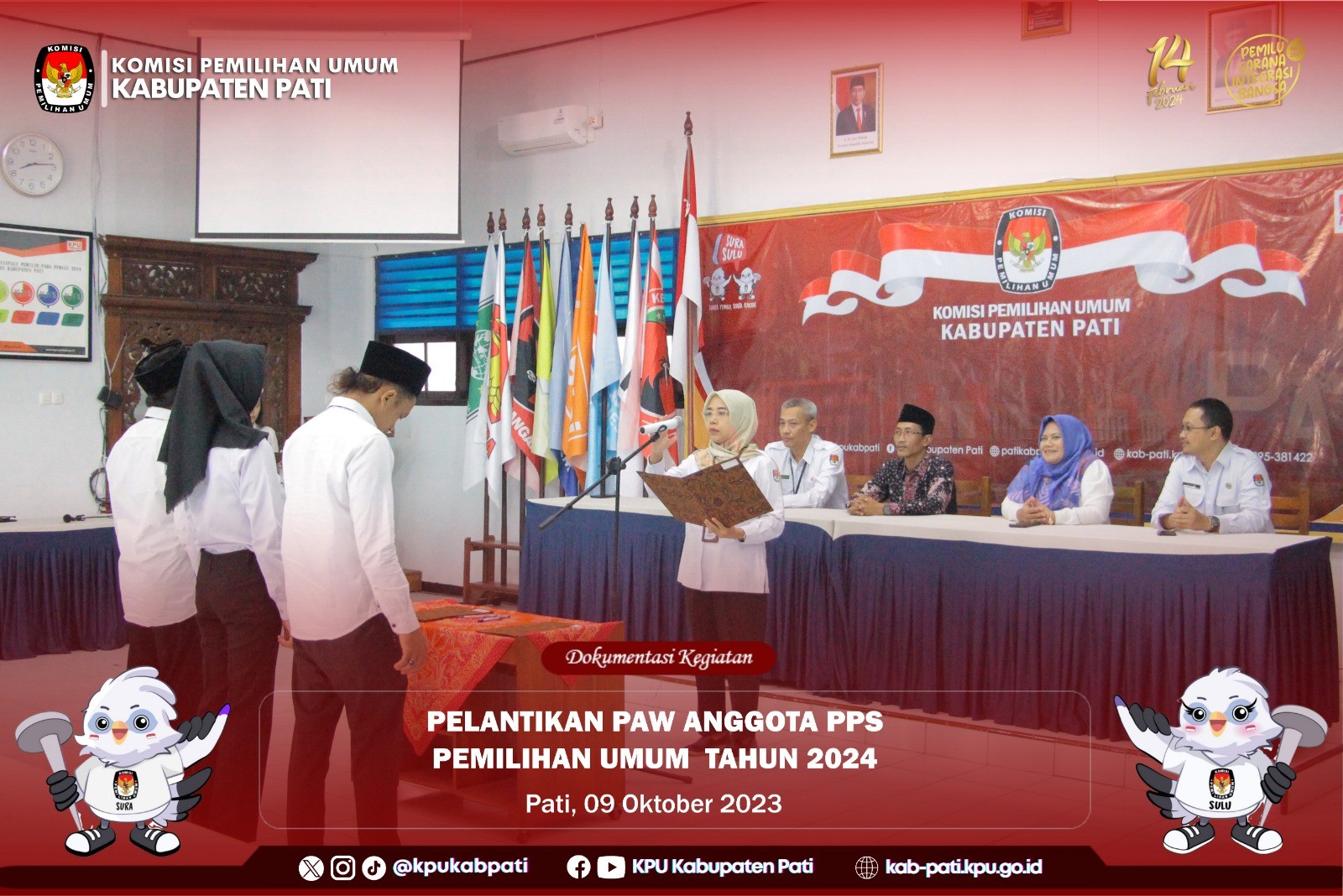 Plt. Ketua Komisi Pemilihan Umum Kabupaten Pati melantik Pengganti Antar Waktu Panitia Pemungutan Suara untuk Pemilu 2024 pada Senin, 9 Oktober 2023.