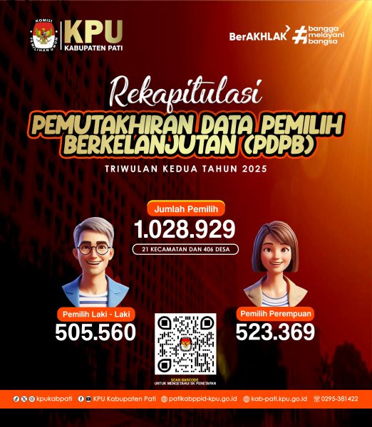 Hasil dari Rapat Pleno Terbuka Rekapitulasi Pemutakhiran Data Pemilih Berkelanjutan (PDPB) Triwulan Ke-2 Tahun 2025 tetuang di dalam Keputusan Komisi Pemilihan Umum kabupaten Pati Nomor 182 Tahun 2025 tengtang Penetapan Rekapitulasi Pemutakiran Data Pemilih Berkelanjutan Kabupaten Pati Provinsi Jawa Tengah Triwulan II Tahun 2025.
