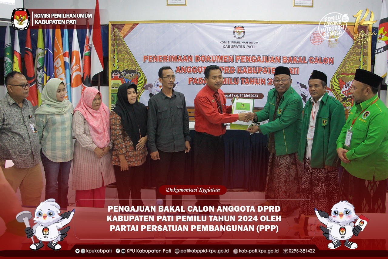 KPU Kabupaten Pati melaksanakan Penerimaan Pendaftaran Bakal Calon Anggota DPRD Kabupaten Pati pada Pemilu Tahun 2024 oleh Partai Persatuan Pembangunan Hari Ke 14, di Aula KPU Kabupaten Pati. Minggu (14/5)