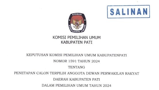 berikut Keputusan KPU Kabupaten Pati Nomor 1591 Tahun 2024