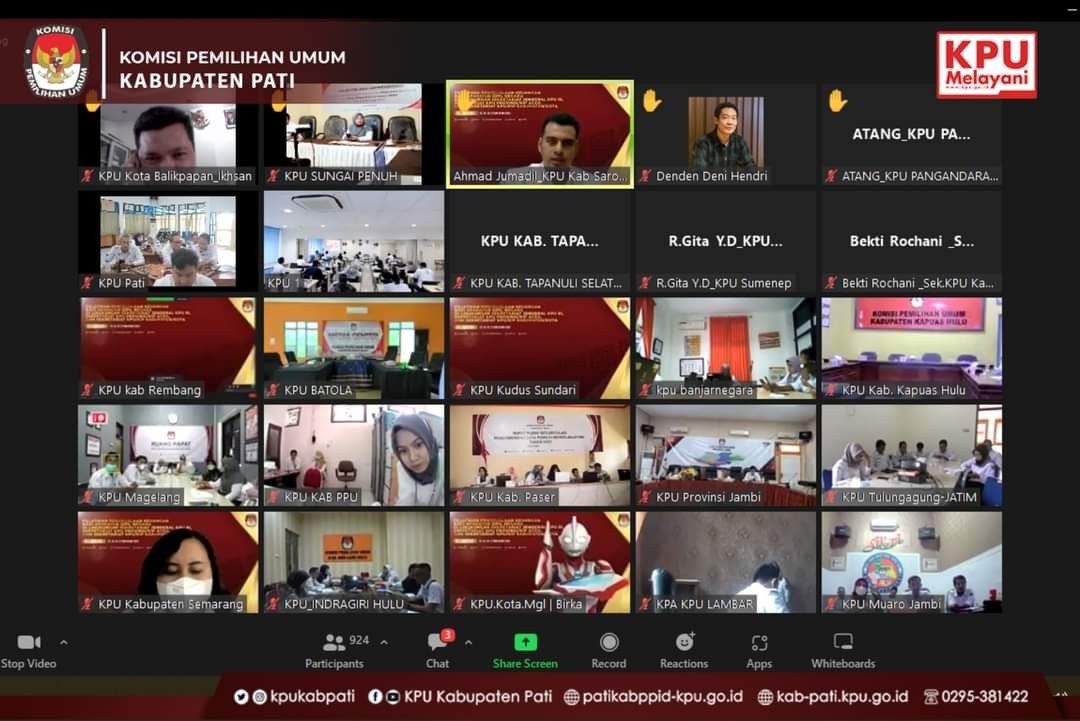 Kegiatan ini diikuti oleh Sekretaris KPU Kabupaten Pati dengan didampingi oleh Kasubbag dan Staf Sekretariat secara daring di Aula KPU Kabupaten Pati.