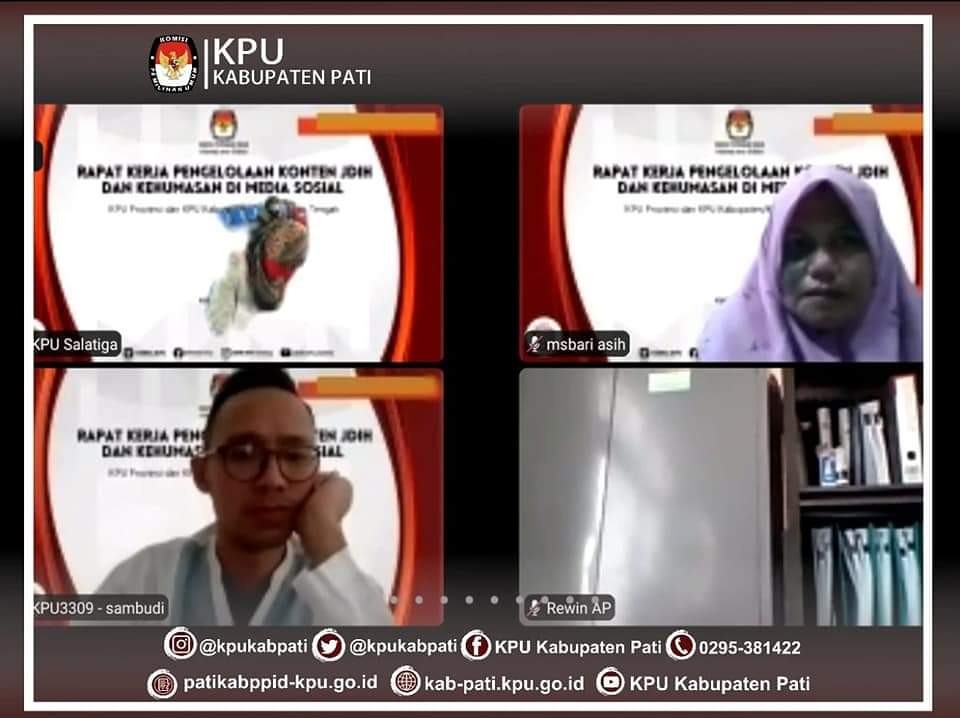 KPU Kabupaten Pati mengikuti Rapat Kerja Pengelolaan Konten JDIH dan Kehumasan Media Sosial yang diselenggarakan oleh KPU Provinsi Jawa Tengah, Kamis (29/7) pukul 13:00 WIB melalui Zoom Meeting.