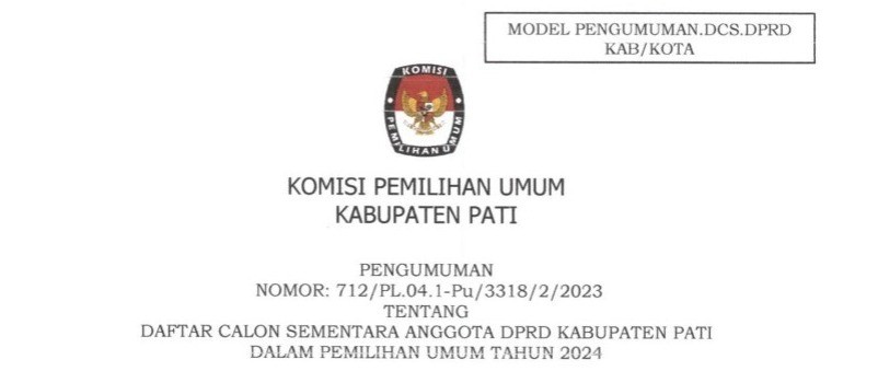Pengumuman DCS DPRD Kabupaten Pati Pemilu 2024