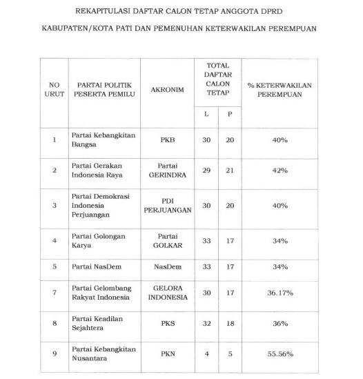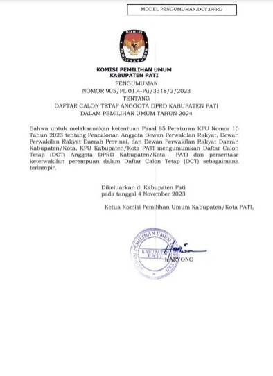 Pengumuman DCT DPRD Kabupaten Pati Pemilu 2024