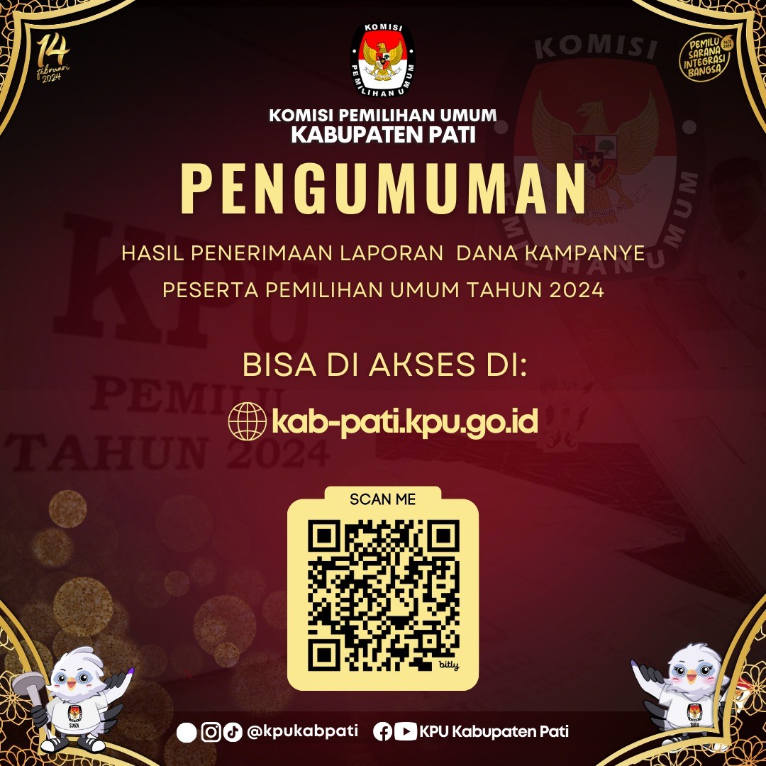 Berikut Pengumuman Hasil Penerimaan Laporan Dana Kampanye Peserta Pemilihan Umum Tahun 2024 di KPU Kabupaten Pati.