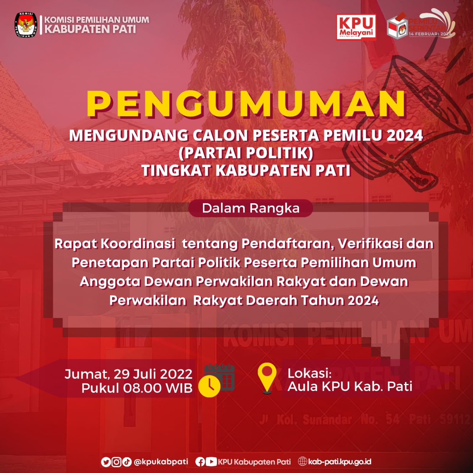 Pengumuman mengundang Calon Peserta Pemilu 2024 (Partai Politik) Tingkat Kabupaten Pati