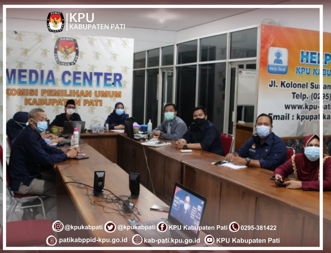 Rabu, 16 Juni 2021, KPU Kabupaten Pati mengikuti zoom meeting Rabu Ingin Tau (RIT) dengan tema "Mengenali Tahapan Pemilu dan Pemilihan Tahun 2024" yang diselenggarakan oleh KPU Provinsi Jawa Tengah. Zoom yang dimulai pukul 10:00 WIB ini diikuti oleh Anggota KPU Divisi Teknis Penyelenggaraan Pemilu, Kasubag Teknis dan Hupmas serta Calon Pegawai Negeri Sipil (CPNS) KPU Kabupaten Pati. Pukul 13:00 WIB, zoom dilanjutkan dengan Rapat Koordinasi Penyelarasan RAB Pemilihan Serentak Tahun 2024 yang diikuti oleh Ketua KPU Kabupaten Pati, Anggota KPU Divisi Perencanaan, Data dan Informasi, serta Sekretaris dan Kasubag KPU Kabupaten Pati.