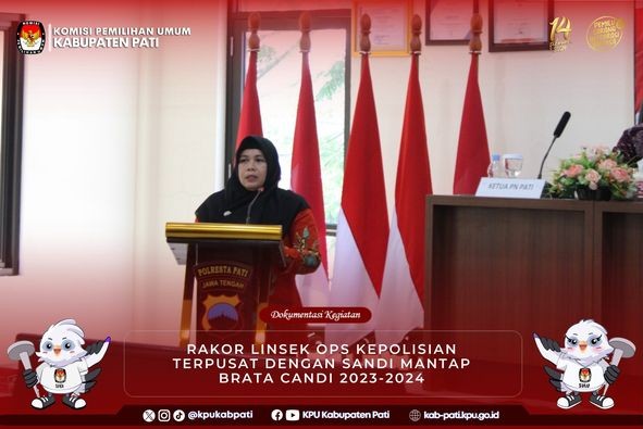 Anggota KPU Kabupaten Pati, Ibu Khoirun Nikmah mengahdiri Rakor Linsek Ops Kepolisian Terpusat dengan Sandi Mantap Brata Candi 2023-2024, pada hari Jumat 13 Oktober 2023 08.00 WIB bertempat di Aula SAR Polresta Pati. Pada kesempatan yang sama hadrpula Ketua Bawaslu pati.
