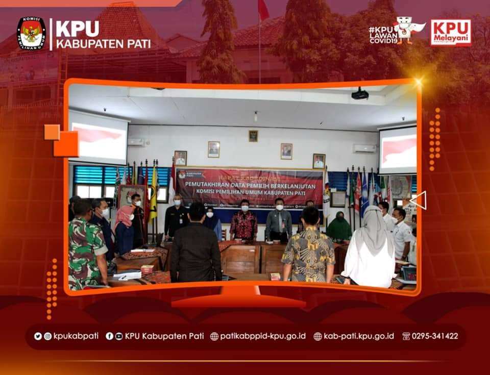 #TemanPemilih, Rabu (29/12) pukul 09:00 WIB, KPU Kabupaten Pati menyelenggarakan Rapat Koordinasi Pemutakhiran Data Pemilih Berkelanjutan Triwulan IV Bulan Desember Tahun 2021. Turut hadir dalam rapat ini pihak dari Polres Pati, Dandim 0718/Pati, Dinas Pendidikan Wilayah III Provinsi Jawa Tengah, Kemenag Kab. Pati, Disdukcapil Kab. Pati, Kesbangpol Kab. Pati, dan Bawaslu Kab. Pati.