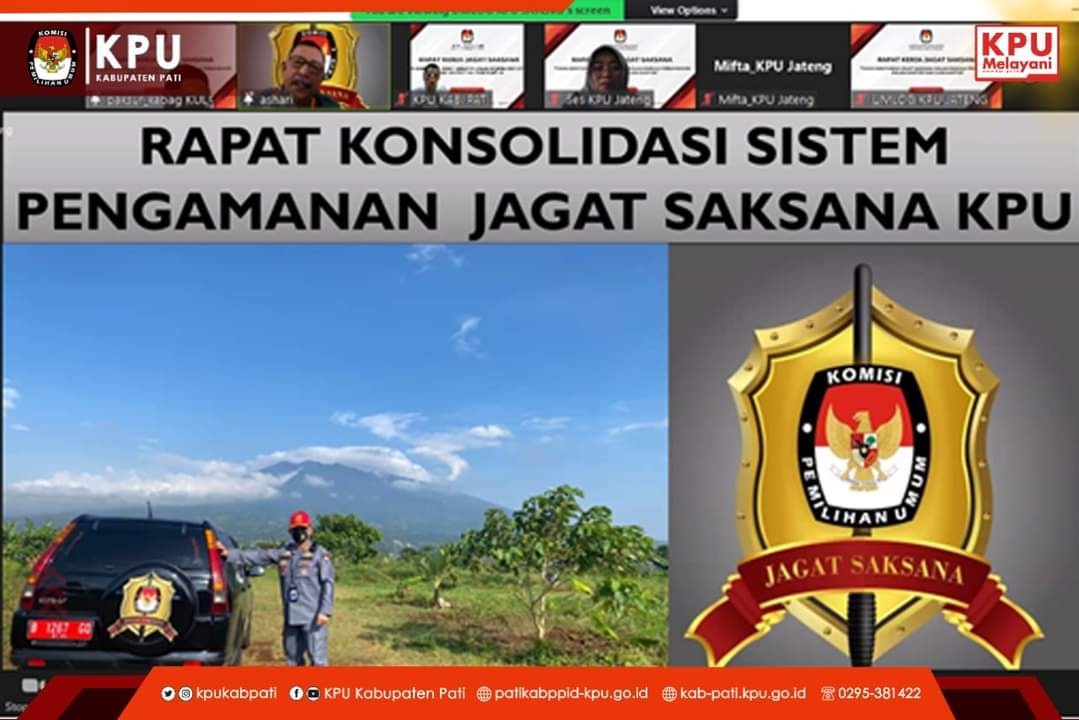 Rapat Kerja dengan tema "Tugas dan fungsi jagat saksana dalam rangka pengamanan dalam kantor maupun luar kantor" dilaksanakan secara daring. Turut juga mendampingi jagat saksana, Plt Kasubbag Umum KPU Kabupaten Pati Bapak Qurniawan Adi, S.H..