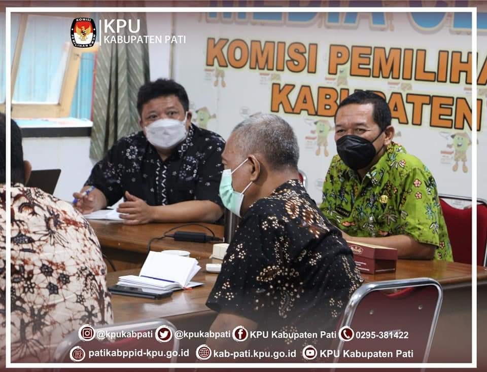 Kamis (12/8), KPU Kabupaten Pati mengadakan rapat koordinasi dengan Kesbangpol Kabupaten Pati membahas Pelaksanaan Program Kerja Kegiatan "Desa Peduli Pemilu/Pemilihan" KPU Kabupaten Pati. Kegiatan ini dihadiri oleh Ketua KPU Kabupaten Imbang Setiawan, serta Anggota KPU Kabupaten Pati Haryono (Divisi Sosialisasi, Pendidikan Pemilih, Parmas dan SDM) dan Sunarsih (Divisi Hukum dan Pengawasan), Sekretaris KPU Kabupaten Pati Sugeng Santosa, serta Kasubbag Program Data Deddy Pirngadi, Kasubbag Teknis dan Hupmas Joko Purwanto, dan Kasubbag Hukum Qurniawan Adi Utomo. Sedangkan dari Kesbangpol Kabupaten Pati dihadiri oleh Sugiyono Kepala Kesbangpol, Slamet Riyanto Kabid Kesbangpol, Retno Budi H Kasubbid Ideologi, Herman Kasubbid Poldagri. Hasil dari kegiatan ini, pada prinsipnya Kesbangpol Kabupaten Pati siap untuk melakukan kerjasama dengan KPU Kabupaten Pati, selama dapat saling menguntungkan kedua belah pihak, dapat bekerjasama, serta saling mendukung.