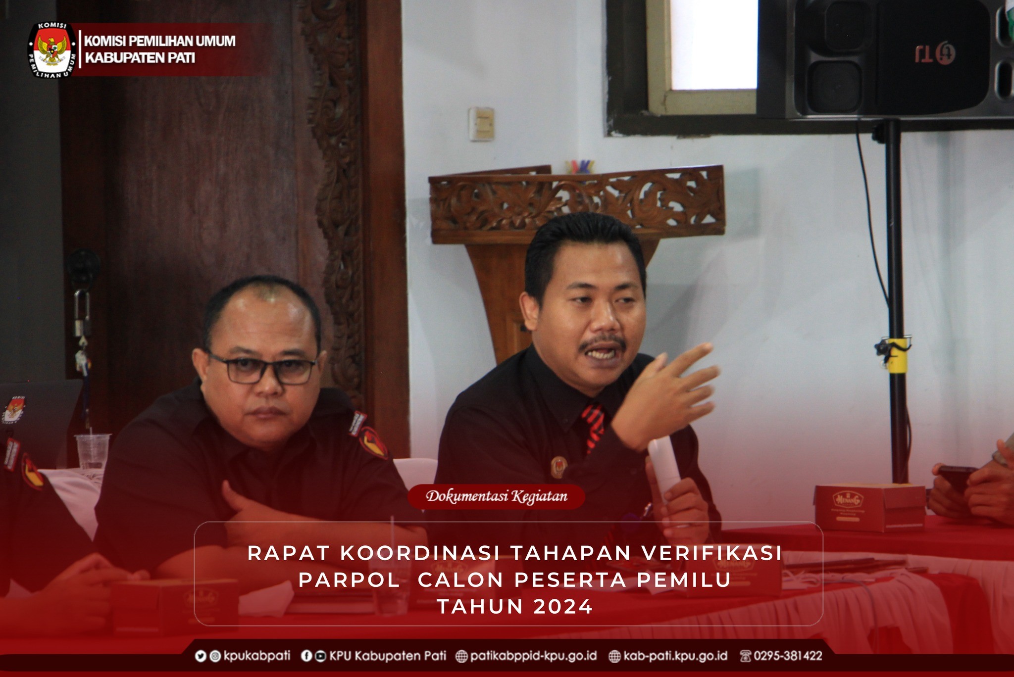 KPU Kabupaten Pati melaksanakan Rapat Koordinasi mengenai Verifikasi Administrasi Partai Politik Peserta Pemilihan Umum Anggota Dewan Perwakilan Rakyat dan Dewan Perwakilan Rakyat Daerah Tahun 2024.