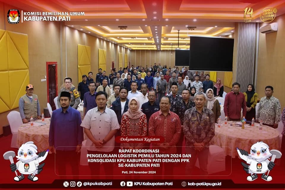 KPU Kabupaten Pati mengadakan Rapat Koordinasi Pengelolaan Logistik Pemilu Tahun 2024 dan Konsolidasi KPU Kabupaten Pati dengan Panitia Pemilihan Kecamatan se-Kabupaten Pati. Acara sendiri diselenggarakan di Hotel New Merdeka pada hari jumat pada tanggal 24 November 2023.