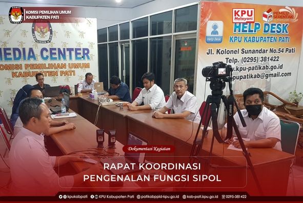 KPU Kabupaten Pati mengikuti kegiatan Rapat Koordinasi Pengenalan Fungsi SIPOL Tipe Pengguna Partai Politik. Kegiatan diselenggarakan oleh KPU Provinsi Jawa Tengah melalui Zoom Meeting. Daring diikuti di Ruang Komisioner KPU Kabupaten Pati Kamis, 7 Juli 2022 Pukul 13.00 WIB.