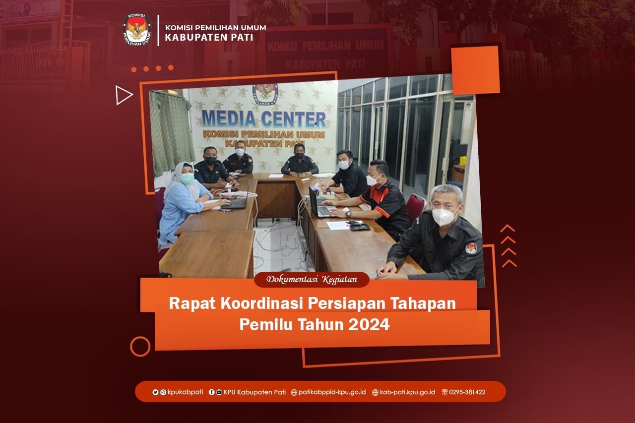 KPU Kabupaten Pati Mengikuti Rapat Koordinasi Persiapan Tahapan Pemilu Tahun 2024, Rabu 20 april 2022 di Ruang Komisioner KPU Kabupaten Pati Pukul 09.30 WIB.
