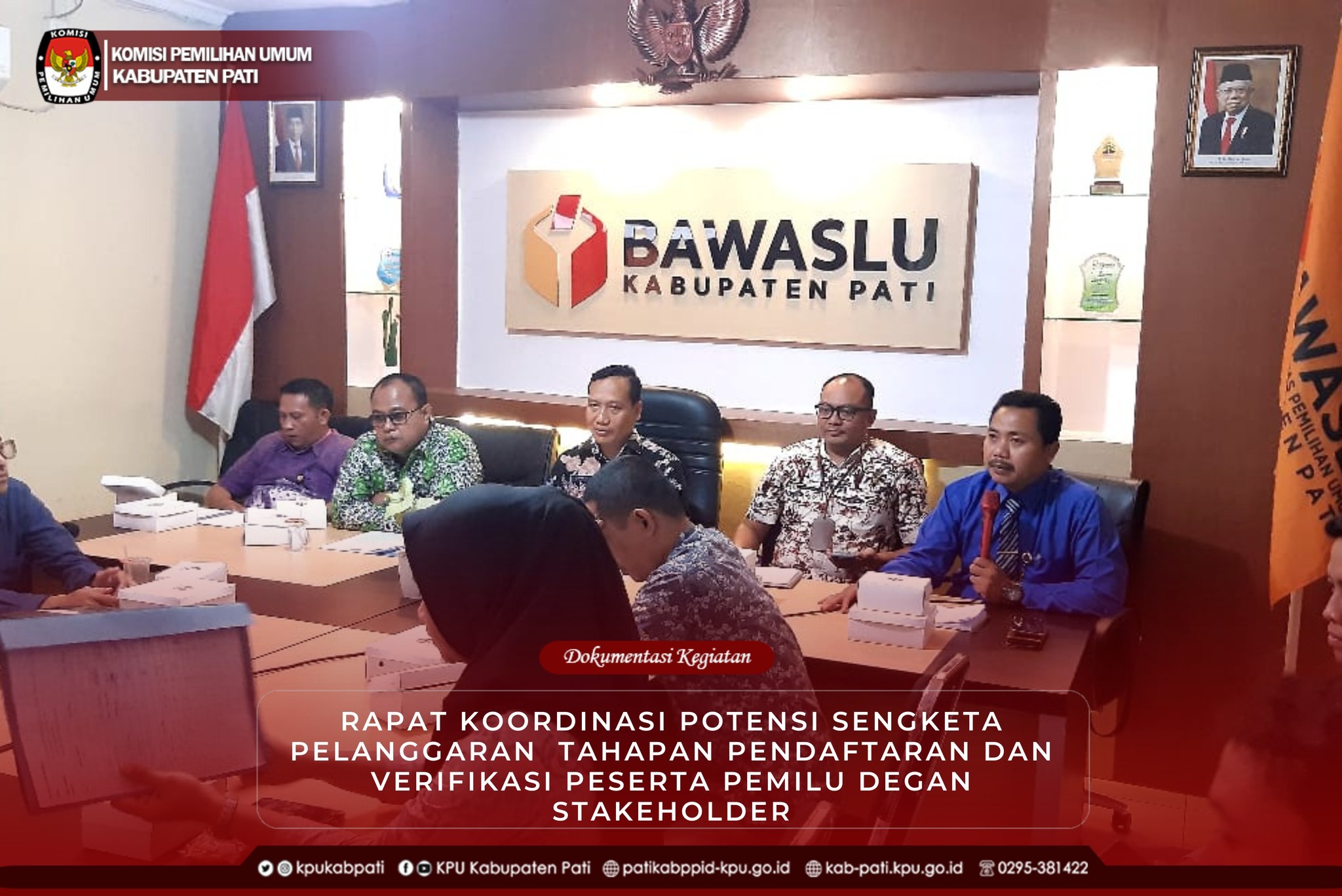 Rapat Koordinasi Potensi Sengketa Pelanggaran Tahapan Pendaftaran dan Verifikasi Peserta Pemilu dengan Stakeholder.