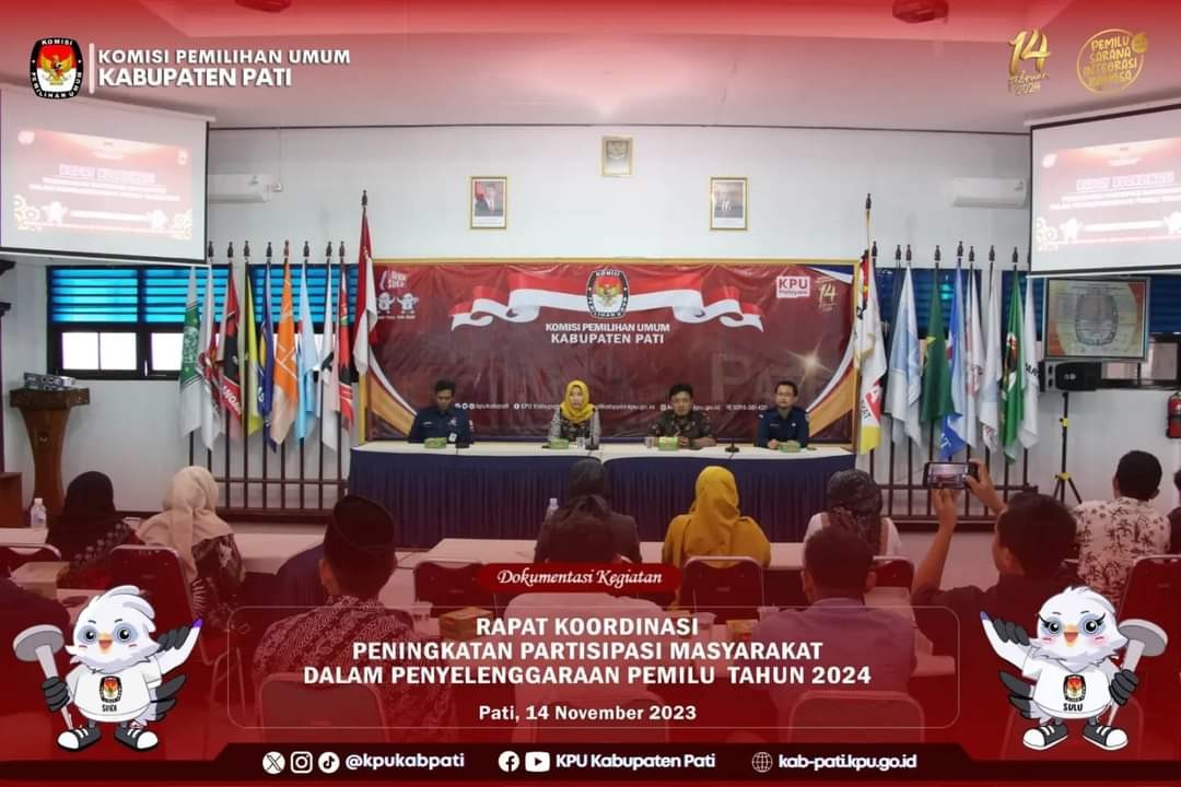 Kegiatan berlangsung di Aula KPU Kabupaten Pati hari Selasa, 14 November 2023, dipimpin langsung oleh ketua Divisi Sosdiklih Parmas dan SDM KPU Kabupaten Pati Nugrahaeni Yuliaadhistiani, S.IP., M.M.