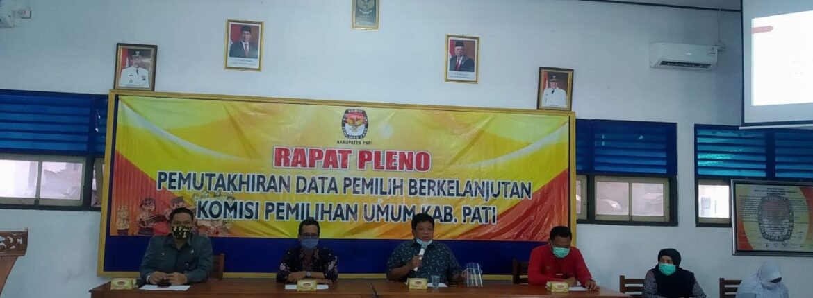 Pada tanggal 21 Juli 2020, KPU Kabupaten Pati melaksanakan Rapat Pleno Terbuka Daftar Pemilih Berkelanjutan untuk Bulan Juni 2020. Dalam Rapat Pleno tersebut ditetapkan jumlah pemilih di Kabupaten Pati berjumlah 1.033.597 dengan jumlah laki-laki berjumlah 508.093 pemilih dan jumlah perempuan berjumlah 525.504 pemilih. Rapat Pleno Terbuka ini dihadiri partai politik dan dinas / instansi terkat ( DInas Kependudukan dan Catatan Sipil, POLRES, KODIM, Kesbangpol, Tata Pemerintahan Setda Pati dan Bawaslu ).