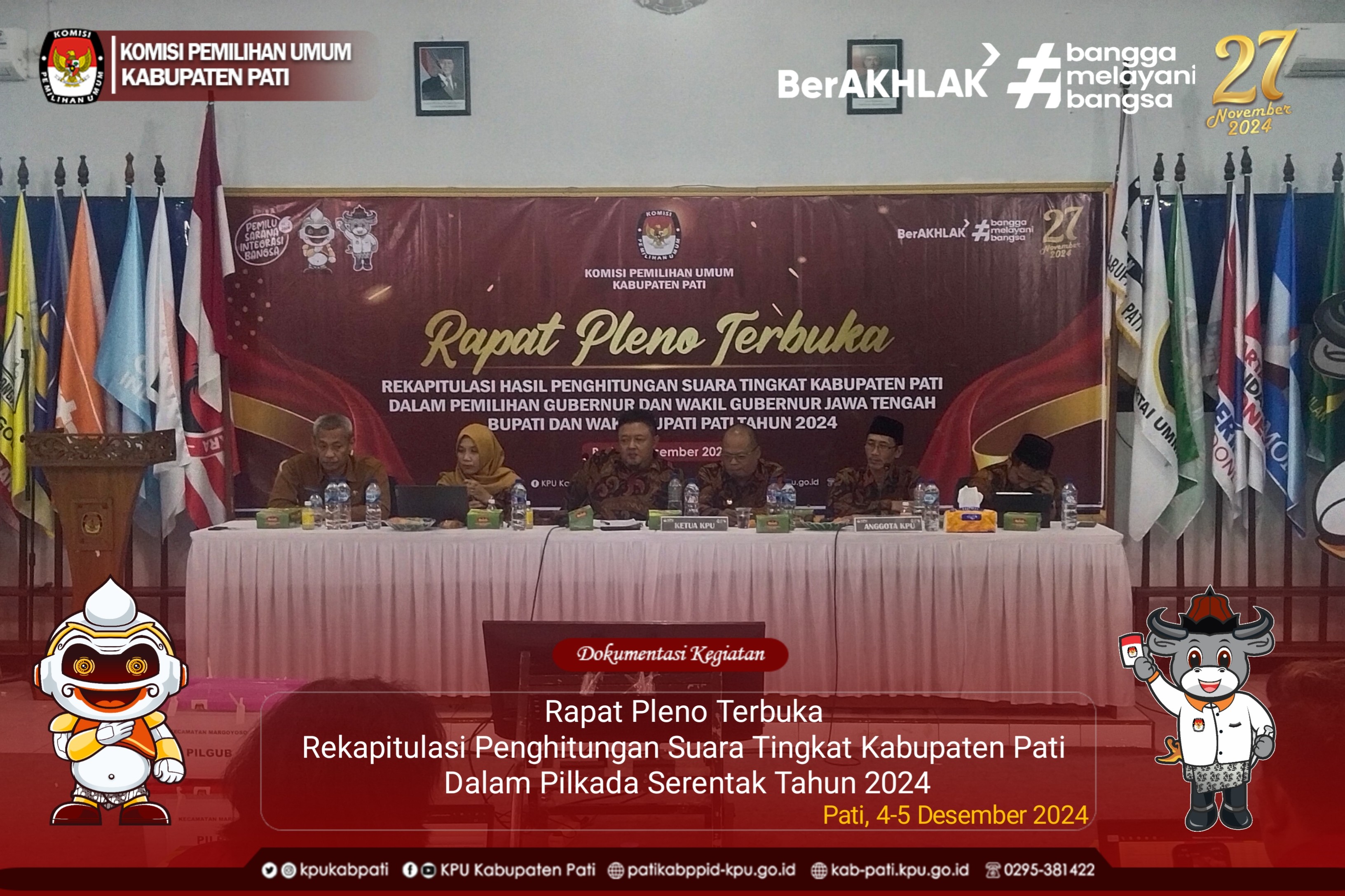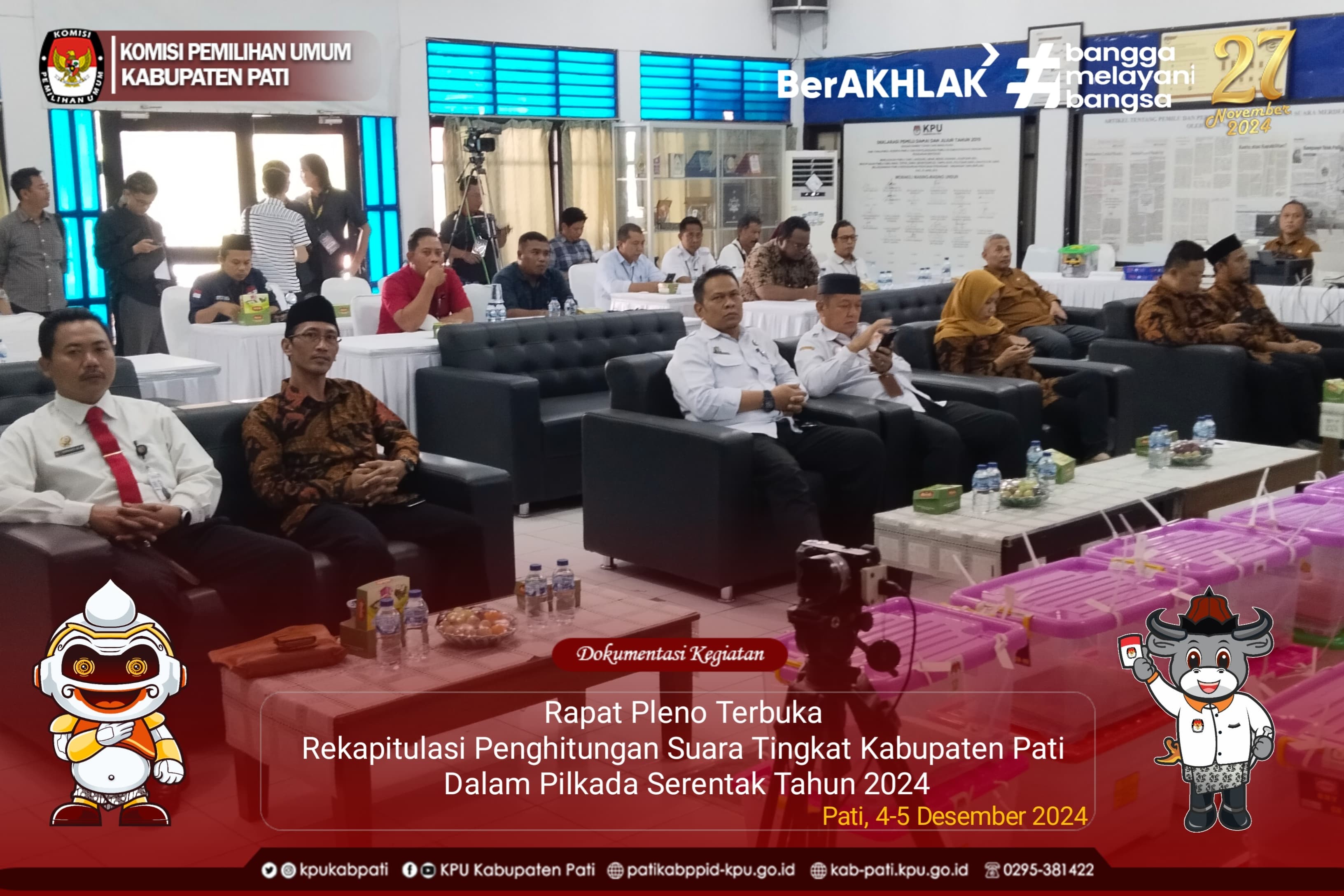 KPU Kabupaten Pati menyelenggarakan Rapat Pleno Terbuka Rekapitulasi Penghitungan Suara Tingkat Kabupaten Pati Dalam Pemilihan Gubernur Dan Wakil Gubernur Jawa Tengah , Bupati Dan Wakil Bupati Pati Tahun 2024