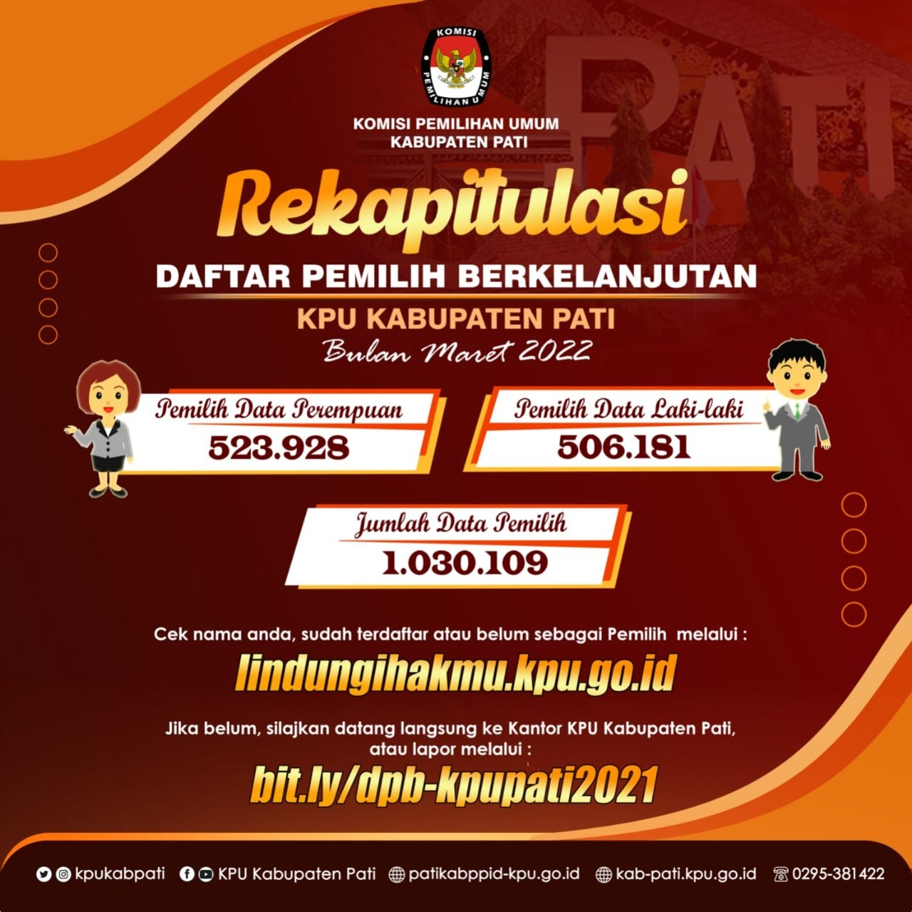 #TemanPemilih, Berikut Rekapitulasi Daftar Pemilih Berkelanjutan Kabupaten Pati Bulan Maret 2022.